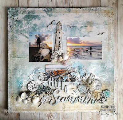 Our monthly Moodboard inspired me to create a mixed media layout suitable to beginning of summer, best time for holidays on the sea.