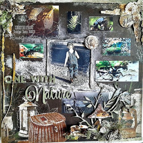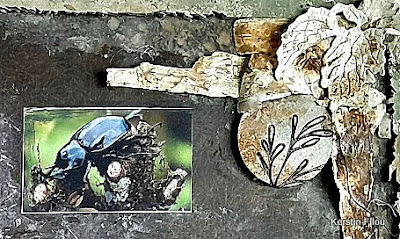 Thus, I created a wild layout. I continued the central photo in a painterly manner and assembled various photos of beetles, plants and spider webs around it.
