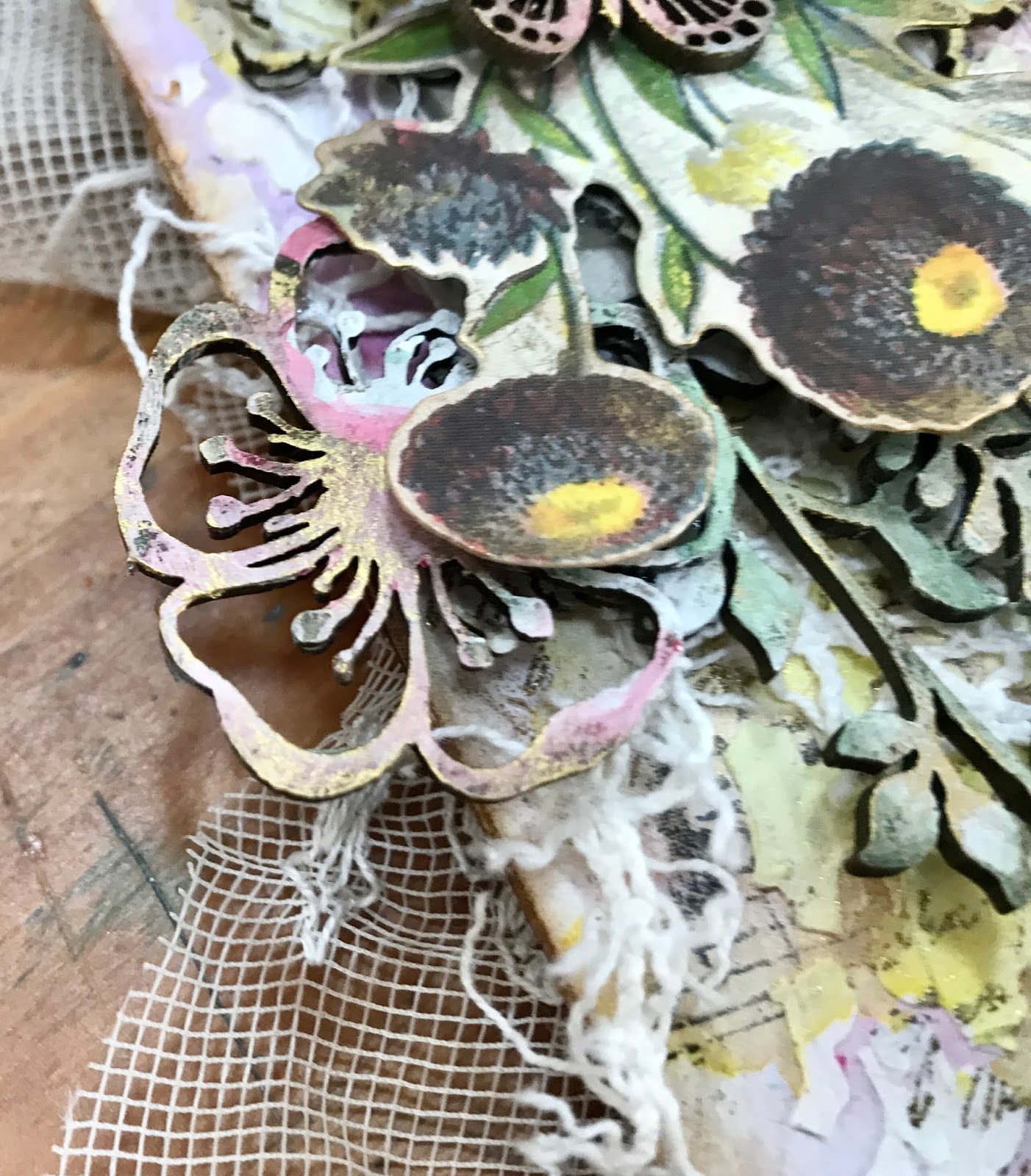 The amazing chipboards were subtly colored with Prima's Oil pastels colors.